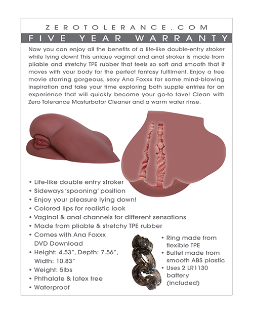 Immerse yourself in the ultimate fantasy with the Zero Tolerance Ana Foxxx Movie Download with Realistic Side Vagina, a creation that transcends the ordinary into a world of breathtaking pleasure. Crafted by the innovative minds at Evolved Novelties INC, this masterpiece, with its lifelike double-entry design, offers an unparalleled experience that’s as close to reality as it gets. The soft, pliable TPE rubber material is designed to feel like a caress against your skin, moving with your body to fulfill your deepest desires. Accompanied by a free movie featuring the stunning Ana Foxxx, this stroker isn’t just a toy; it’s an adventure waiting to be explored, promising to transport you to new heights of ecstasy. Whether you’re indulging in the heat of the moment or taking your time to savor every sensation, this stroker will quickly become your most treasured companion. After each passionate session, the easy-to-clean design ensures that your stroker is ready for whenever the mood strikes again.